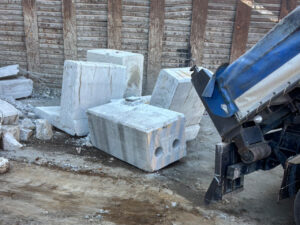 橋桁切断して玉掛け運搬作業